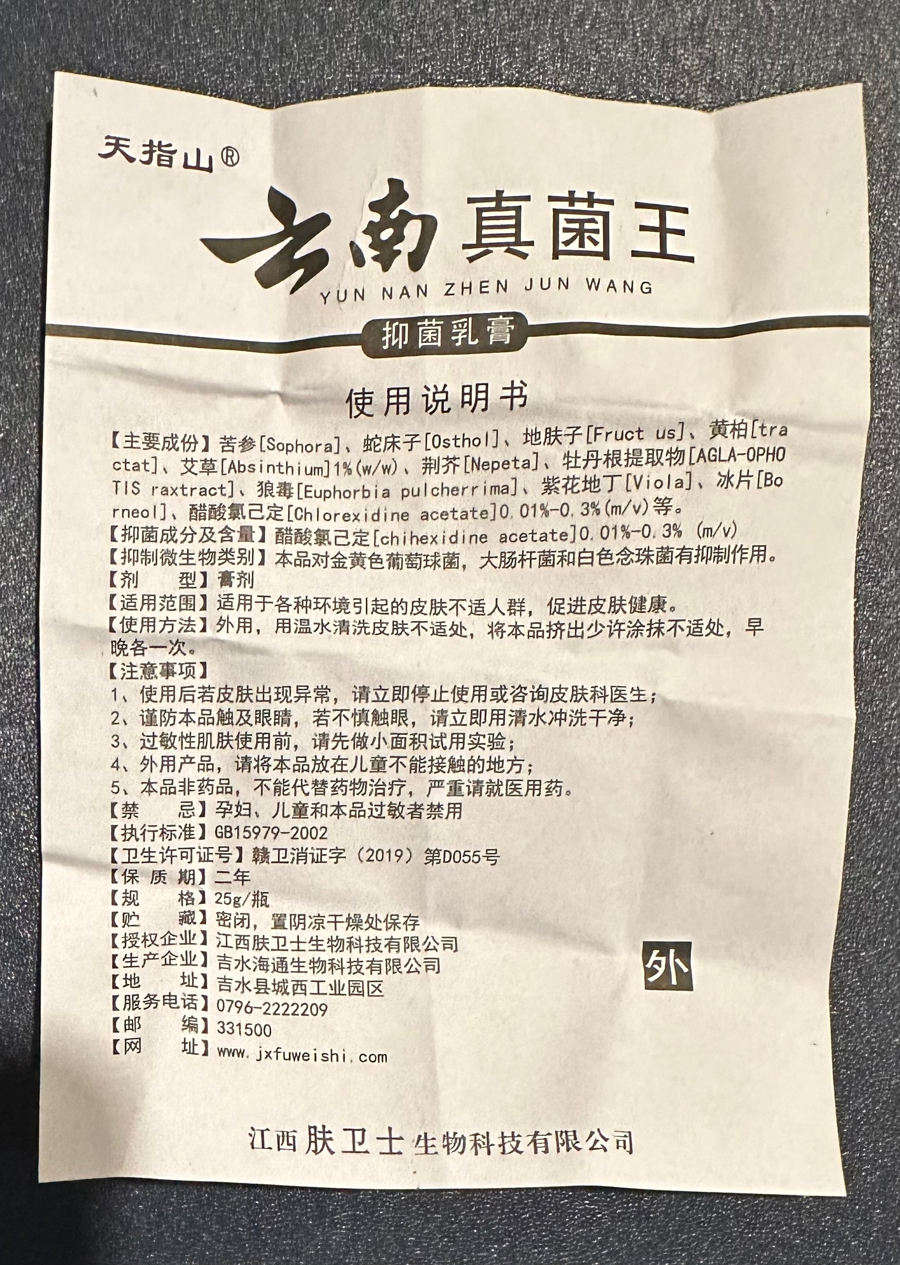 Tianzhishan Yunnan Fungus King Antibacterial Cream 25g has the effect of inhibiting fungi and relieving itching. It is effective for athlete's foot, foot odor, foot itching, various skin problems, hives, mosquito bites, blisters, skin rash and psoriasis. It can lastingly inhibit bacteria and relieve itching. This herbal cream is non greasy, cool and comfortable to use. Pure plant formula is suitable for all skin types